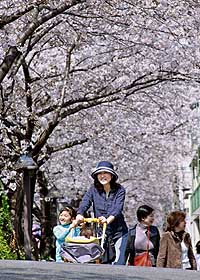 春雨洗凈鉛華,又逢賞櫻時節。在東京著名的賞櫻勝地新宿御苑,櫻樹繁花似錦,樹下游人如織。春風伴著花香,吹進賞花人的心里。 在御苑一株櫻樹下,平澤和幾名好友席地而坐,面前擺放著意大利通心粉、飯團和面包等食品。她們盡情聊天,享受著午后悠閑的時光。微風吹過,花瓣飄落,草坪籠上一層粉紅的氤氳。 在日本,4月1日是新年度的開始,也是新生入學和公司新員工正式上班的日子。在這一天外出賞櫻,自然也成為同學或同事聯誼的良機。 御苑問訊處的工作人員本莊說:“平時,這里游客每天最多也就兩三萬人,而在賞櫻時節,特別是天氣晴朗的周末,每天游客可達10萬人左右。”在今年的賞櫻季節,新宿御苑在原來三個售票點的基礎上又增設了兩個臨時售票點,但每個售票點窗口前還是排起了上百米的“長龍”。 不光是御苑,日本幾乎每個稍有名氣的賞櫻場所,每年3月到4月的賞櫻時節都門庭若市。人們或呼朋喚友或全家出動,在櫻樹下鋪上塑料布,聊天、唱歌、玩游戲,或者什么都不做,只是靜靜地躺著,閑看淡粉色的櫻花映襯在碧空下。 這時節,種有櫻樹的人家一般都會邀請親朋好友到家里賞花,種有櫻樹的學校和企業也會向公眾開放。年輕學生和上班族一般會在忙完功課或工作后,相聚在一起觀賞夜櫻。東京上野公園、愛宕神社和京都円山公園等夜晚都會點燈。與白天相比,朦朧燈光下的夜櫻別有一番風情。 這時節,連整個日本社會仿佛都在圍繞著賞櫻運轉:氣象廳每隔幾天就要發布一次各地的花期預報;一些網站每天更新各地賞櫻場所的開花情況;不少商店在醒目位置擺放“賞櫻便當”、“賞櫻團子”、清酒和水壺等賞花用的食品和器具;警方則加派人手疏導賞櫻場所的交通。 賞櫻已成為日本的春季盛事。在日語中,“賞花”一詞如果沒有添加限定詞,指的就是觀賞櫻花。由于各地櫻花開放的日期不同,不少日本人甚至從南往北隨著花期的推移趕到各地賞櫻。 |