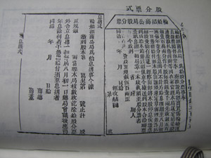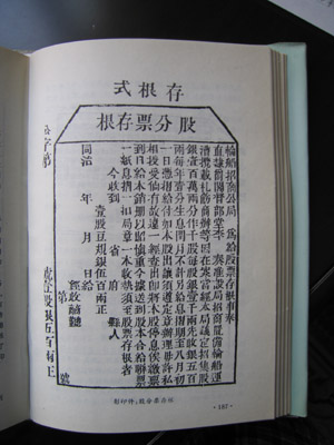 事情確實也如此,從有人提出引進輪船和開辦西方式的新型企業到招商局成立,晚清朝野之間經歷了十多年時間的徘徊、爭議、反對,障礙重重。如果不是李鴻章抱定此事是“毅然必行之事,破群議而為之”去進行推動的話,招商局還不可能在1872年成立。“招商局由李鴻章奏設,局務應由李鴻章主政”,出自總理衙門的這句話,除了進一步確認了招商局與李鴻章之間的關系外,也明確了企業的責任歸屬。這一點,對于當時社會裂變期中國新型企業的生存環境和條件,同樣起到了畫龍點睛的作用。 其次是股票中對企業本身情況的說明,即對該局的總股本,每股的金額和分配方面的規定以及需注意事項的說明中,也有幾點很不尋常:一是每股的金額特別大,如按每股一千兩計算,總股本只有一千股,即使按先收一半即五百兩,每位股東再按平均購買一股算,股東總數也只有2000人,何況不可能每位股東都只購買一股,因此股東總人數低于2000人是可以肯定的。這個規定,與傳統中國社會中合伙企業的股東數量一般不多是一脈相承的。二是文字中明確有“每年壹分生息”的規定。這個“壹分生息”的規定在招商局的局規中被稱為“官利”,是每年不管企業經營情況如何都必須發放的固定股息,如果企業經營的好,利潤率超過壹分,超過壹分發放的利息被稱為“紅利”或“余利”。這一點,與西方企業中的優先股的規定還不一樣,因為當時甚至沒有優先股的概念。因此,這個規定絕對可以稱得上是有中國特色的東西。因為西方一般股份制企業通行的規則,是股票收益應視企業的效益如何而定,而不能事先規定固定的利息率。規定利率的現象,一般只存在于債券的發行中。招商局這時既無優先股的規定,而“官利”的特點又與一般西方式股份制的規定有明顯區別。因此從這個意義上看,當時的這份股票又帶有債券的性質。有意思的是,由招商局“開其端”的規則中也包括這個“官利”的分配制度在內。在招商局之后陸續成立的其它企業如開平礦務局、上海機器織布局、徐州利國礦務局以及20世紀后中國成立的其他各種類型的股份制企業中,這種規定都一直存在,并且一直存在到1956年資本主義企業全行業實行公私合營改造時才被定息所取代。 三是在交款購買股票時,除拿到留下存根后的股票外,還同時發給領取“官利”的息折和局章各一本。也就是說,通過這些方式以及規定,在強調這份股票的合法性和權威性的同時,還保證其在運作中的可操作性。 總之,從這份股票中留下的這些規定以及嚴厲的語氣看,給人的印象是除了有關企業的規定外,似乎是企業股票的味道少而官方文告的味道多,但也正是在這些地方,透視和散發出歷史變化的氣息。