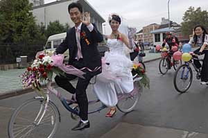 走路上班盡管健康,但也有很大的局限性——住的地方離單位不能很遠(yuǎn),否則難以堅(jiān)持,對(duì)身體的消耗也太大。由此,騎自行車成為了另一種綠色出行方式。 趙先生是一名自行車的忠實(shí)愛(ài)好者。他告訴記者,從上大學(xué)到工作,他一直以自行車為主要交通工具,只要情況允許,他一般不選擇公交、地鐵、出租等交通方式。 而趙先生選擇自行車,并不完全因?yàn)榉奖悖鋵?shí)他本人還是一名環(huán)保志愿者。“節(jié)能減排的重要意義大家都明白,可是很多人認(rèn)為這和自己沒(méi)什么關(guān)系。其實(shí),只要大家能盡量多地使用自行車這樣的綠色交通工具,就是在為環(huán)境、為后代做貢獻(xiàn)了。”趙先生說(shuō)。 事實(shí)上,像趙先生這樣懷念自行車的人越來(lái)越多,如今,人們對(duì)自行車這種傳統(tǒng)交通方式的回歸已催生了一些新的行業(yè)。 記者在北京國(guó)華商場(chǎng)、牛街路口等地看到,上百輛顏色鮮艷且統(tǒng)一規(guī)格的自行車整齊地停在路邊。原來(lái),這里開(kāi)設(shè)了自行車租車點(diǎn),行人只要辦一張會(huì)員IC卡,就可以以每小時(shí)五角錢的價(jià)格租到自行車,且可以在其他網(wǎng)點(diǎn)異地還車,電子計(jì)時(shí)扣費(fèi),非常方便。