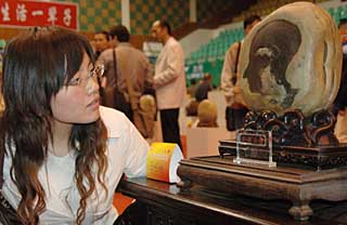 攝) | 為配合第八屆中國藝術節,三峽奇石精品展11月4日在湖北省宜昌市開幕。記者現場觀展發現,被譽為“濃縮山川秀水、再現古今奇觀”的三峽奇石,日漸受到人們喜愛,并成為了一項陶冶情操、致富當地百姓的特色文化產業。 三峽石因產于長江三峽沿岸河床灘頭而得名,色彩以黑、白、灰、黃色為主,紋理獨特,象形石、文字石、圖畫石妙趣天成,令人嘆為觀止。三峽奇石小到幾克,大到幾十噸,經過打磨、加工,賣價從幾元到數十萬元不等。 從上世紀80年代起,一批有經營頭腦的企業家和經營戶紛紛進入奇石領域,將三峽奇石向商品化、產業化方向推進,尤其是打磨拋光技術的運用,更是大大促進了三峽奇石的商品化步伐。 記者注意到,宜昌人玩石、賞石風盛行,石頑、石癡人數眾多,收藏、品賞蜚聲海外,玩石、藏石、賞石已成為宜昌市民一種新的時尚生活。據三峽奇石收藏家協會統計,宜昌市奇石收藏者已由10年前的200多人猛增到現在八萬多人,奇石收藏量達到50枚以上的已有2000多戶,奇石收藏真正進入了尋常百姓家。長陽清江奇石館、清江奇石苑、點軍車溪奇石山莊、五峰灣潭奇石館、三峽奇石城等一批大型奇石館相繼誕生。 如今,長陽縣的奇石專業村發展到六個,專業戶有100多家,從事采集、收藏奇石的人有數萬人,長陽成立了奇石協會,清江奇石一年為長陽創收近千萬元。五峰、遠安、秭歸、夷陵、興山、宜都等縣市區,也相繼出現了大批奇石經營專業戶。 三峽奇石收藏推動了本土文化的對外交流。今年9月,三峽奇石收藏家協會代表湖北省組團參加了“2007走進奧運”中國觀賞石展,王斌的清江石“薩馬蘭奇”獲得金獎,同時還獲得兩枚銀獎、三枚銅獎,獲獎數在全國名列前茅。宜昌也先后舉辦了兩次大型奇石展,李發軍、謝藝揚等一批藏家走出宜昌,在重慶、廣西等地開辦三峽奇石展館,推動了三峽奇石文化與各地的交流。 |