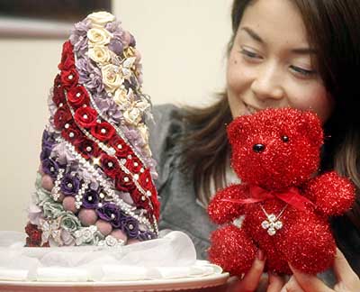 在日本首都東京的高島屋總店,一名職員展示總售價約兩億日元(約合1351萬元人民幣)的一棵綴滿鉆石的圣誕樹和與其配套的泰迪玩具熊。這套商品是日本大型百貨集團高島屋為迎接圣誕節假期而推出的,圣誕樹和泰迪熊身上一共裝飾了約400顆、總重100克拉的鉆石。