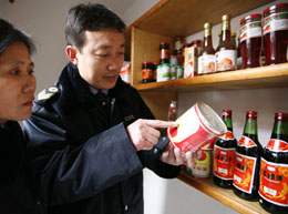 12月12日,寧河縣衛生監督所工作人員檢查餐飲經營單位儲藏室內采購的配料質量。