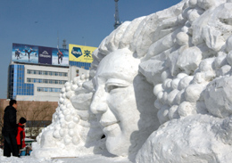 雪雕“豐收女神”新年亮相