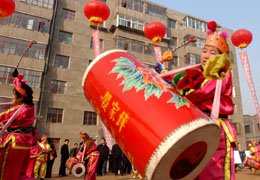 1月9日,蘭州市民舞起太平鼓歡慶廉租房住宅小區奠基。