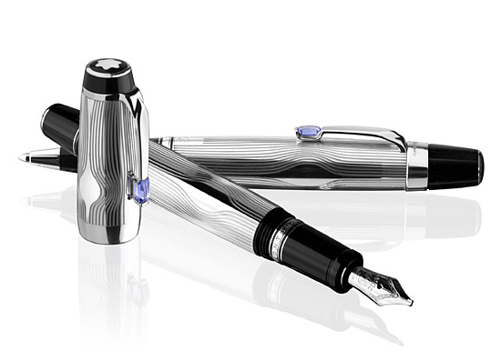 萬寶龍日前推出了全新的“波希米亞阿拉伯之舞藍(lán)晶石”系列。該系列的墨水筆、圓珠筆及簽字筆以純銀精鑄,筆桿表面飾以精致的刻紋線條,與烏亮的樹脂筆頭形成悅目對比。尤為值得一提的是,這三款新作的筆夾均飾以閃爍蔚藍(lán)色晶石,延續(xù)了波希米亞書寫工具系列的設(shè)計特色。