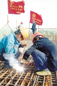 日前,在國家重點建設項目合武鐵路建設過程中,中鐵四局一公司開展了“客運專線黨旗紅”等多種形式的農民工黨建活動,引導農民工黨員為國家重點建設做貢獻。