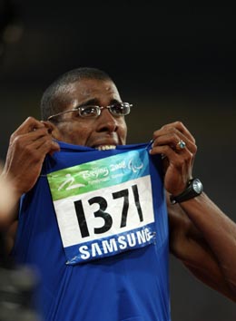 9月10日,古巴選手加拉諾在比賽后。當日,在國家體育場進行的北京2008年殘奧會男子400米T13級決賽中,加拉諾以49秒12的成績奪冠。