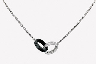 其中,今年全新升級的系列限量版項鏈,呈現出卡地亞獨具匠心的風格和魅力。這款在圣誕節限量推出的作品,黑色陶瓷上雕刻有著名的螺絲標志,與鑲嵌鉆石的18K白金金環絲絲相扣,渾然一體,和諧而甜蜜。(資料照片)