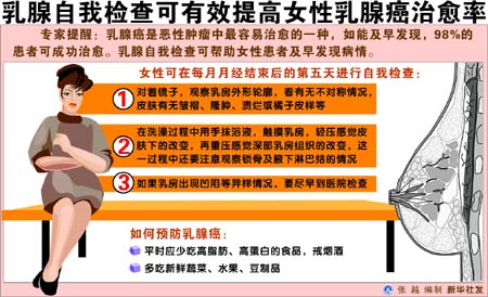 乳腺自我檢查可有效提高女性乳腺癌治愈率
