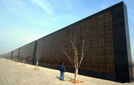 2月26日,一位年輕人在看地震紀(jì)念墻上的祭文。日前,河北省唐山市政府為更好地保護(hù)地震遺址,同時給廣大市民提供一個祭祀地震罹難者的場所,在建設(shè)中“唐山市地震遺址紀(jì)念公園”中建造的一座長約300多米,鐫刻上祭文和24萬罹難者姓名的地震紀(jì)念墻即將竣工。 1976年7月28日,河北唐山發(fā)生里氏7.8級地震,造成24萬人遇難。