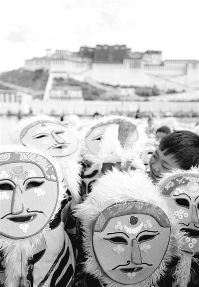 8月23日,總投資3.8億元的西藏三大重點文物保護維修工程竣工慶典在拉薩市布達拉宮廣場舉行。作為我國政府高度重視西藏文化保護的一項標志性工程,布達拉宮、羅布林卡、薩迦寺三大重點文物保護維修工程于2002年開工,維修主要包括古建筑和壁畫維修、搬遷和環境整治、新改建公用設施等。圖為當日參加竣工典禮的孩子們帶著藏戲面具在布達拉宮廣場合影。