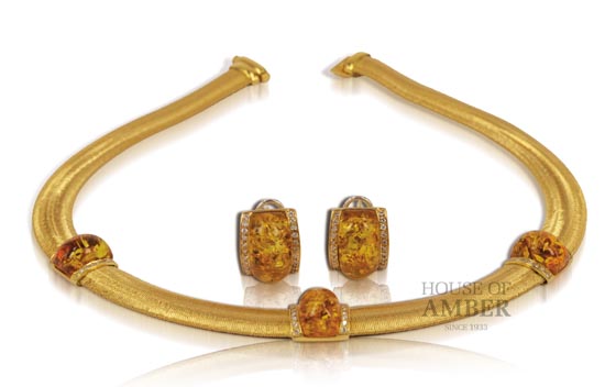 ▲來自哥本哈根、擁有76年歷史的著名琥珀制造商—— H O U SE O FA M BER (丹麥琥珀屋)秉承了丹麥設計簡約精致的精髓。此次H O U SE O FA M BE R展示了多款經典設計,其中獻給丹麥王妃的一套首飾頗為搶眼。該款設計結合了金、琥珀、鉆石三種元素,項鏈主鏈由18K金構成,中間鑲嵌有三顆酒金色琥珀,琥珀周圍被一圈閃亮的鉆石包圍,高貴而奢華。據悉,該品牌目前已登陸北京。
