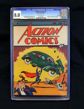 美國漫畫收藏家們今年以來頻頻出手,繼2月份兩次刷新單本漫畫拍賣紀錄后,3月29日,一本保存極為完好的超人漫畫首發刊拍出150萬美元高價。 這本1938年版《動作漫畫》第一期29日在拍賣網站www.comicconnect.com上以150萬美元成交。拍賣網站所有者斯蒂芬·菲什勒說,這本漫畫在網站上發布數分鐘后,即被名為“鐵桿漫畫粉絲”的買家以150萬美元拍下。 這本首發刊標志著身穿藍色緊身衣、披紅色斗篷、胸前印有S標記的超人形象首次面世。同一版本的超人漫畫曾在2月份拍出100萬美元高價。幾天后,標志著蝙蝠俠誕生的1939年第27期《偵探漫畫》拍得107.55萬美元。 業內人士估計,目前該版本超人漫畫僅存約100本,但保存情況良好的為數不多。此次拍出的這本漫畫保存得相當好,比2月份拍出百萬美元的同版本評級還要高。 據拍賣網站介紹,它此前被夾在一本舊電影雜志內,半個世紀后才在匹茲堡的一場舊貨拍賣中被人們發現。 這本漫畫當年發行時售價僅為10美分。