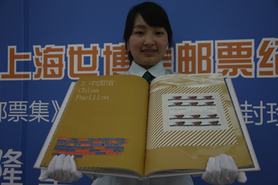 中國集郵總公司日前在京發行了首部上海世博會郵票整版票全集珍藏冊,即《百年世博精彩郵票集》。 據悉,《百年世博精彩郵票集》含有世博整版郵票11版、2小版及小型張1枚,另有世博主題紀念郵票30版,共含世博郵票43版,近390枚。