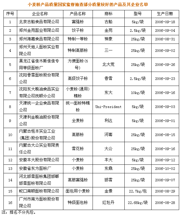 國家質檢總局組織對普通小麥粉和專用小麥粉產品質量進行了國家監督抽查,共抽查了北京、天津、河北、內蒙古、遼寧、吉林、黑龍江、江蘇、安徽、山東、河南、廣東、四川等13個省、市、自治區224家企業生產的246種產品,產品抽樣合格率為95.5%。自2002年開始實施小麥粉市場準入制度以來,質檢總局加強了對小麥粉加工企業的監管,小麥粉的產品質量比2002年提高了60.9個百分點。