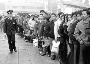 買房排隊 人物:市民柳先生 排隊時間:兩天兩夜 柳先生早在上個月就看中了位于南京東郊麒麟鎮某樓盤的一套房子。柳先生知道房源緊俏,因此在沒有正式開盤前就早早排號。 但是,4月15日,南京出臺“新十條禁令”,不允許開發企業在取得《商品房預售許可證》前提前排號。于是開發商通知柳先生原來的排號作廢,必須在開盤當天來排隊才視為有效。 “這個樓盤是4月22日開盤,可是4月19日就有人開始排隊了。”柳先生看好的房子可不想給別人買去了。于是,他托朋友,想方設法找來一個農民工替自己排隊。“排兩天兩夜的隊,給了200塊”,柳先生雖然心疼那200塊錢,卻也放不下看好的房子。當然,別人排隊自己怎么也不放心,柳先生這兩天兩夜也沒有睡好,經常要去現場看看。要知道“有的農民工排了隊就不給‘雇主’房號,然后房號都炒到1000塊錢了。”