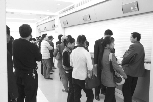 銀行排隊 人物:記者 排隊時間:40分鐘 4月24日下午1:38,記者來到新街口招商銀行營業大廳,取了排隊號碼紙:631號。此時,剛剛排到484號,排在記者前的還有147個人。 營業大廳里的3排座位坐得滿滿當當,大廳里還有不少人站著。不少客戶坐在椅子上打著哈欠或是玩弄手機。一名男子甚至在椅子上打起了盹。有一位客戶取了號碼紙,一看排到了600多號,毫不猶豫地把紙揉成一團,扔進垃圾桶,轉身離開。 面對排隊問題,銀行雖然已經做出了一系列努力,但并非立竿見影。營業廳的12個窗口全部開放,每位客戶的交易速度也不算慢。但當記者的號碼出現在營業廳的屏幕上時,仍舊過去了40分鐘。 |