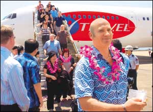 5月7日,英國著名旅游企業Mytravel集團的一架飛機抵達海南三亞鳳凰國際機場,實現了英國曼徹斯特至三亞旅游包機的首航,100余名英國游客開始了在三亞的度假之旅。這條航線將延續至今年10月,每周執飛1個往返航班。