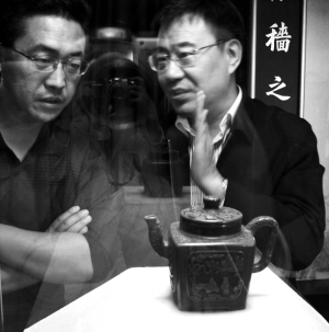 “紫泥清韻——故宮博物院藏宜興紫砂展”近日在故宮齋宮舉辦,展品是從近400件明清皇家紫砂茗壺、茶具、文房清供、花盆、陳設瓷等故宮藏品中遴選出的110多件(套)具有代表性作品,為外界罕見。據悉,展覽將持續到10月31日。圖為觀眾在欣賞一件紫砂胎雕漆四方壺。