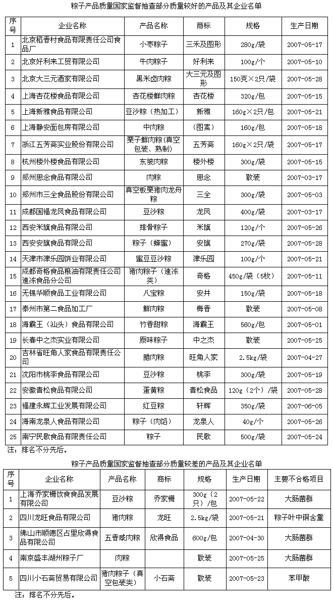 本次專項抽查重點對粽子產品中酸價、過氧化值、鉛、砷、銅、苯甲酸、山梨酸、糖精鈉、甜蜜素、安賽蜜、大腸菌群、硼砂以及粽子葉中銅含量等13個與人體健康密切相關的項目進行了檢驗。