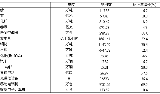 表4 2006年主要工業(yè)產(chǎn)品產(chǎn)量