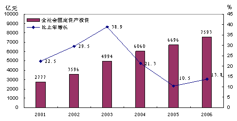 圖2 2001-2006浙江省全社會(huì)固定資產(chǎn)投資及其增長(zhǎng)速度