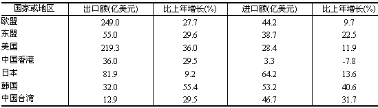 表6 2006年對(duì)主要市場(chǎng)進(jìn)出口情況
