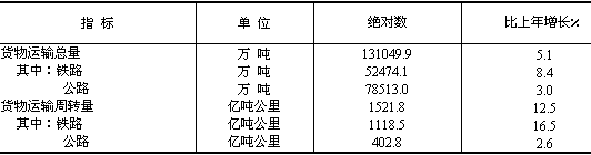 表8:2006年各種運輸方式完成貨物運輸量