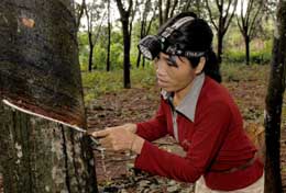 紅星新村農民符麗芬在割膠。 本報記者:姜恩宇