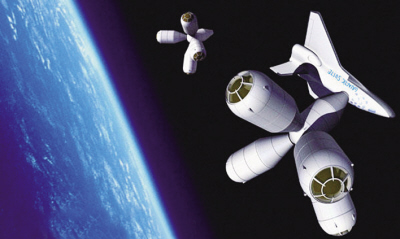 美國www.space.com網站近日報道,世界上第一個太空旅館有望在2012年建成。屆時,太空迷們可以花400萬美元在這里住3天。這是“銀河套房酒店”的效果圖。