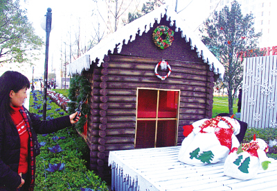 圣誕、新年即將到來,北京街頭節日氣氛漸濃。圖為搭建在長安街上的一座“圣誕小屋”,吸引了過往行人拍照、留念。