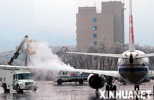 1月27日,一架客機在貴陽龍洞堡機場接受“桑拿”式除冰解凝。