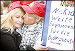 | 諾基亞德國(guó)工廠的數(shù)名員工走上街頭抗議,希望諾基亞考慮工人權(quán)益。 |