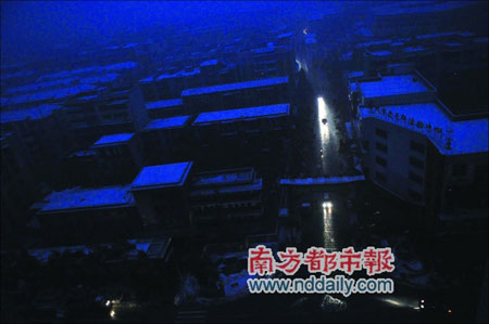 沒有電,甚至連電信、移動、聯通等通訊部門的服務基站也幾乎癱瘓了。當地很多地方手機都沒有信號,電腦更是無法上網。 昨(30日)晚,記者在郴州市政府應急指揮中心寫稿,電力也兩度中斷。截至今日零時記者發稿時止,市政府大樓的供電仍未恢復。 而郴州市政府秘書長袁佳游昨天下午接受記者采訪時則表示,郴州已經成為了一個電力“孤島”——當地對外電網因為故障已經全部斷開。目前只能依靠內部電網進行自救。但他坦言,這非常困難。因為冰雪壓斷了電纜,壓塌了電塔基座,整個郴州已沒有一條正常供電的線路。