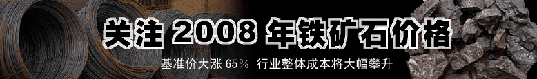 上海鋼鐵行業預警委員會專家、鋼聯電子商務公司副總經理賈良群表示,2007年,寶鋼曾談下9.5%的漲價幅度,為全球和中國鋼鐵企業立了一功。但2008年形勢完全不同了,再期望把鐵礦石價格漲價幅度控制在很低范圍已失去市場基礎,因此,即使是中國企業能夠首先談下價格,其結果估計與65%的漲幅差距不大。[詳情] |