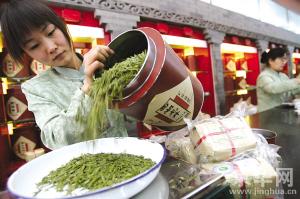 昨天(3月23日),經歷雪災的首批明前西湖龍井茶葉運抵京城,并在北京吳裕泰茶莊開售。年初雪災使春茶上市的時間比往年推遲了10多天,但由于出芽前冰雪殺死了許多害蟲和細菌,今年的春茶質量比往年要好。首批明前茶售價和去年持平為每斤5600元。