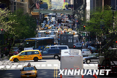 這是2007年5月31日拍攝的車輛擁堵在美國紐約曼哈頓42街的資料照片。