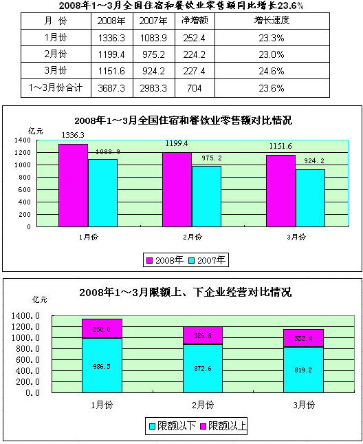 附:2008年1-3月全國住宿與餐飲業零售額對比情況表