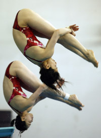 雅典一舉斬獲6金、去年墨爾本世錦賽狂攬9金,用“強(qiáng)大”來(lái)形容被稱為“夢(mèng)之隊(duì)”的中國(guó)跳水隊(duì)并不為過(guò)。 中國(guó)跳水最后一站奧運(yùn)選拔賽——2008年全國(guó)跳水冠軍賽暨奧運(yùn)會(huì)選拔賽在3月的落幕,意味著中國(guó)隊(duì)歷時(shí)一年的奧運(yùn)選拔告一段落。盡管距離奧運(yùn)參賽名單的正式公布尚需時(shí)日,但奧運(yùn)陣容已基本清晰。 在雅典奧運(yùn)會(huì)上包攬單、雙人金牌的郭晶晶與“黃金搭檔”吳敏霞聯(lián)手出戰(zhàn)女子3米板應(yīng)無(wú)懸念;男子3米板人選也無(wú)爭(zhēng)議,世錦賽冠軍秦凱和世界杯冠軍何沖將出戰(zhàn)單人、雙人項(xiàng)目;女子10米臺(tái)方面,世界杯冠軍陳若琳和世錦賽冠軍王鑫位置相對(duì)穩(wěn)固,而周呂鑫和林躍則是男子10米臺(tái)最有可能的人選。