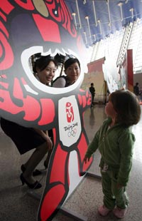 日前,上海浦東機場舉行了“空地攜手金牌服務迎奧運”活動?粘巳藛T與機場工作人員同旅客們一起玩籃球、轉呼啦圈,共同感受運動帶來的快樂。圖為空姐在候機樓與小旅客互動。
