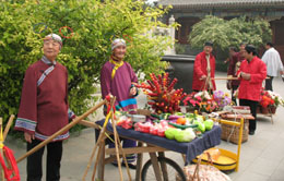 “五一”期間,北京大觀園舉辦了古裝表演“元妃省親”、“黑祥子”人體雕塑表演、“京城絕活兒”——老北京叫賣等文化系列活動,吸引了眾多游客觀賞。