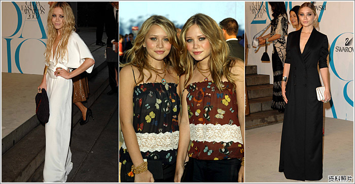阿什莉的氣質深受品牌設計師青睞。迪奧的設計師約翰·加里亞諾說:“我走在街上,看見到處都是她的照片,她帶給我秋季設計的靈感。作為一位設計師,我印象最深的是,她擅長通過衣服表達個性和情感。就像我主張的那樣:一個女人,哪怕穿同一件衣服,依然個性判然! 妹妹瑪麗-凱特則經常一副“丐幫”打扮:頭戴軟邊帽子,身穿松松垮垮接近膝蓋的大號針織衫,肩上挎一個大號布口袋,手臂上戴著各種零碎的裝飾品,手拿連鎖咖啡店的大號咖啡杯,最后再戴上一副能把小臉遮上一半的巨大墨鏡。《紐約時報》曾不客氣地評價道:這個身家上億的少女,居然喜歡如此貧民風格的打扮,簡直可以稱得上是“垃圾時尚”。 美國時裝界資深評論家和設計師布萊克韋爾每年都會對好萊塢明星們的穿著加以批判,瑪麗-凱特不幸兩次登上他的“年度最差著裝明星榜”。一次的評語是“邋遢落魄的著裝讓她看起來像個壓抑的乞丐”;另一次的評語是“像一根遭受了龍卷風襲擊的破爛牙簽”。 可是,瑪麗-凱特的“垃圾時尚”卻在年輕人中掀起熱潮。女大學生們不再挖空心思去購買古奇或者普拉達的昂貴包袋,她們開始青睞那些經過做舊處理、看上去好像已經被用了好幾十年的大布袋。衣著方面,年輕女孩們開始搜集“農夫襯衫”、舊毛衣、磨邊夾克。她們還會用昂貴的羊毛外套搭配經過磨損處理的牛仔靴。這就是傳說中的“波希米亞”風格。