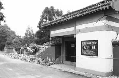 | 傷痕累累的李白故居 | 殘墻、斷壁、破瓦,遍地狼藉,“盛唐詩酒無雙士,青蓮文苑第一家”已不復昔日風采。《市場報》記者24日在四川江油看到,震后的李白故居,圍墻已有2/3損毀,主建筑均存在不同程度損壞。而這僅是災區景區受損的一個縮影。四川省旅游局有關負責人表示,地震給當地旅游產業造成巨大傷害,據估算,目前直接損失已超過500億元。
