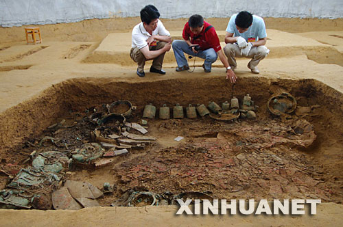 6月15日,考古人員正在對雙墩春秋古墓進(jìn)行發(fā)掘。 | |