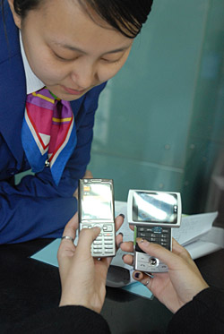 | 奧運協辦城市沈陽的市民正在選購、試用3G手機。新華社發(王齊波
