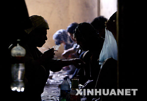 | 6月23日,在阿富汗首都喀布爾,吸毒者在廢棄的建筑物里吸食海洛因。 |