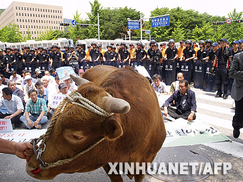 韓國中央政府當天上午發布了美國牛肉進口衛生條件告示修改案,從而完成了恢復美國牛肉進口的最后一項行政步驟。韓國將在當天晚些時候開始對先期運抵的5300噸美國牛肉進行入關檢疫。 新華社/法新