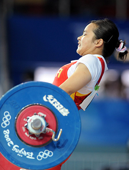 中國選手陳燮霞在北京奧運會女子48公斤級舉重比賽中獲得冠軍。