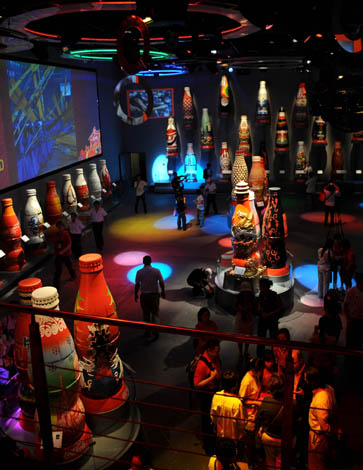 8月9日,在北京奧林匹克公園,來自全國各地的34個可口可樂藝術(shù)瓶向公眾展出,精美的“瓶體”藝術(shù)品展現(xiàn)中國傳統(tǒng)文化和各地民俗風情,是奧運與文化、商業(yè)、藝術(shù)的精巧結(jié)合。這是8月9日在奧林匹克公園拍攝的可口可樂藝術(shù)瓶。