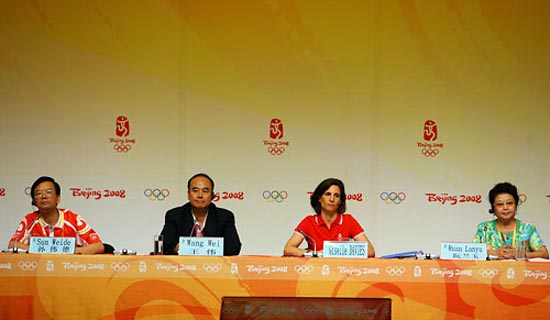 王偉:女士們,先生們,早上好!首先把比賽運行情況向大家做一個介紹。昨天在30個場館進行了27項比賽,其中20個場館在北京,10個場館在6個協辦城市。公路自行車比賽已經圓滿結束。昨天在比賽場館接待了3231名運動員、2252名隨隊官員,來自131個參賽隊的2359名技術官員、495609名觀眾、6512名貴賓和7857名新聞記者。除此之外,場館還接待了403支訓練隊,有2051名運動員和507名隨隊官員。